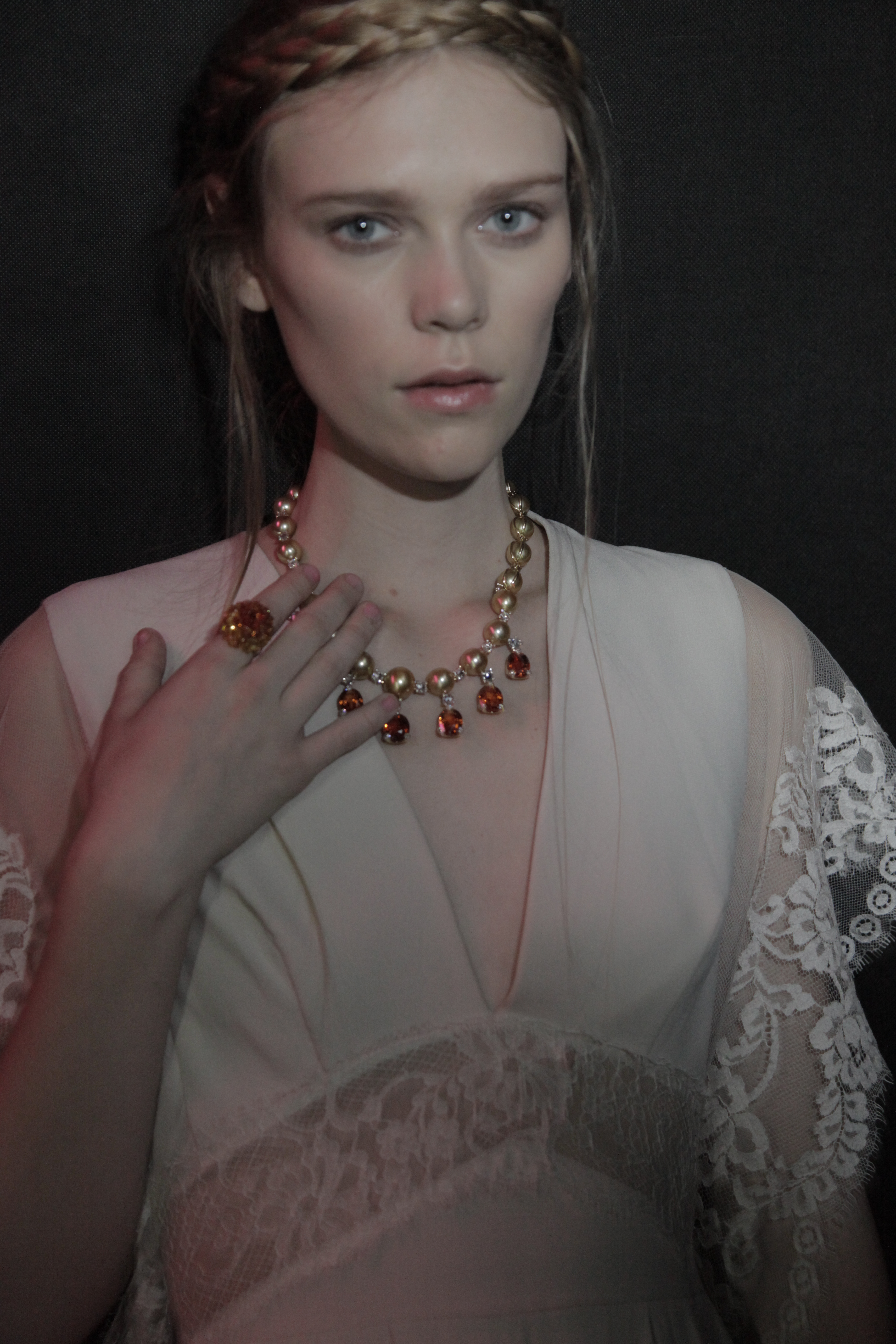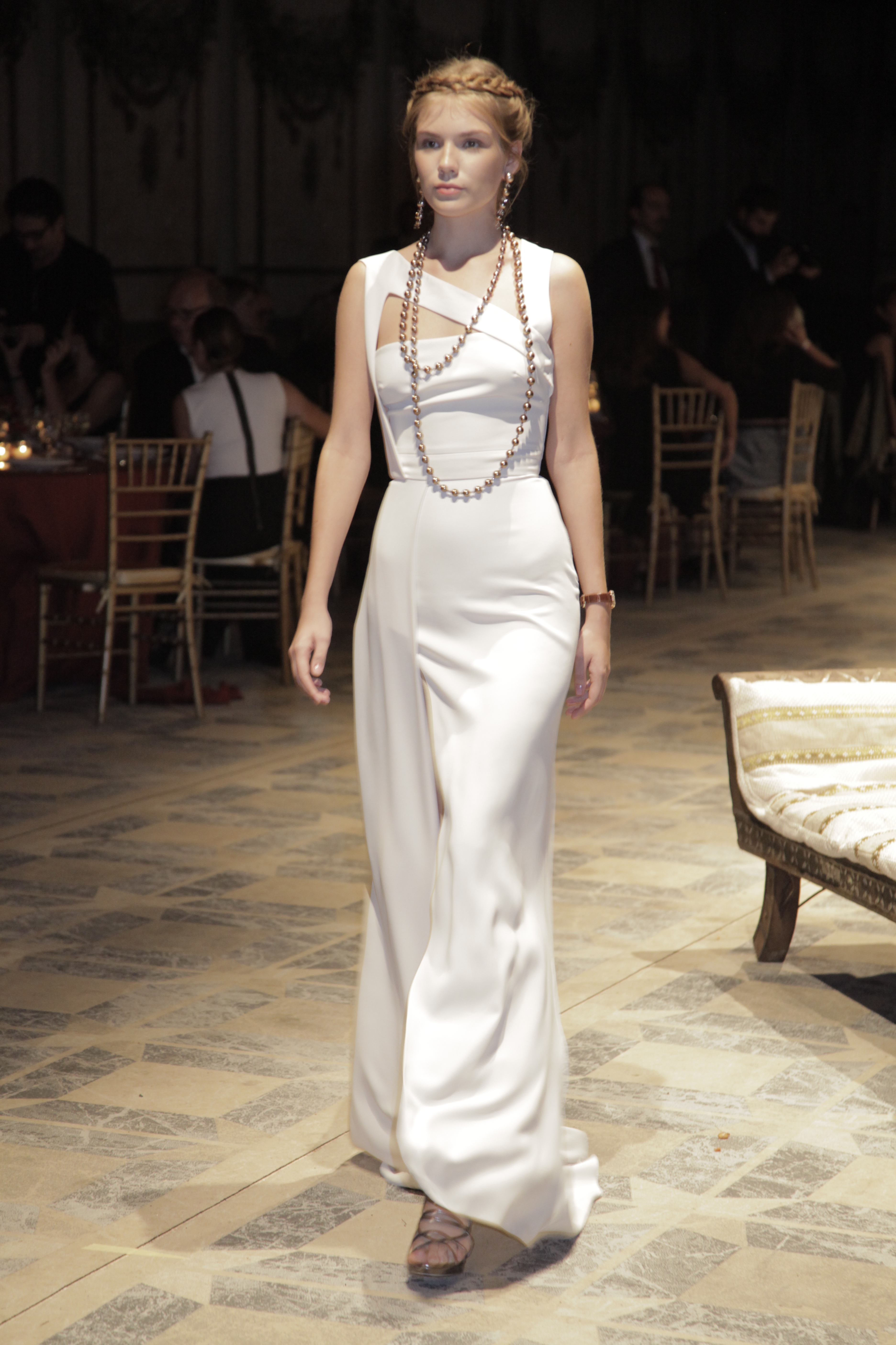 Η Πριγκίπισσα Isabella Borromeo φόρεσε ενα μακρύ κολιέ σε λευκό χρυσό 18 καρατίων με στρογγυλά διαμάντια (24 καράτια) και ενα ζευγάρι σκουλαρίκια σε λευκό χρυσό 18 καράτια με μπριγιάν (5 καράτια), καί τα δύο από την High Jewellery Collection, οπως επίσης καί ενα ρολόι σε λευκό χρυσό 18 καρατίων με διαμάντια.